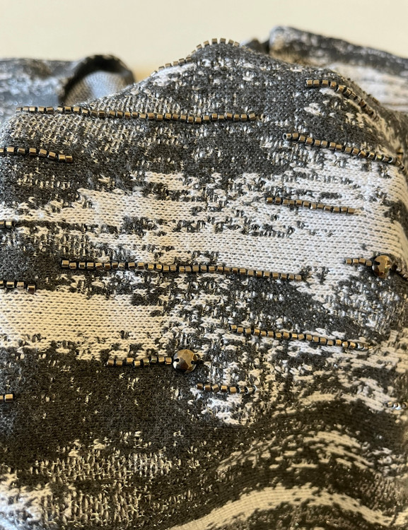 یقه تا نیمه های پایین سرشانه دست دوز ملیله و مونجوق کارشده