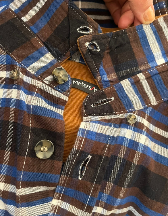 دارای دکمه زیر یقه برای ثابت نگه داشتن ایستایی یقه میباشد