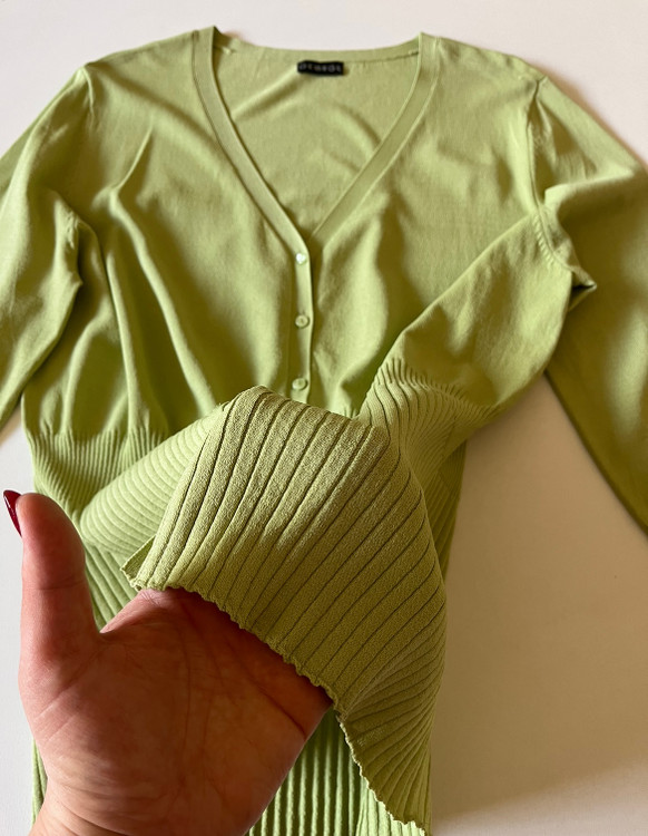 کیمینو اززیربقل جلو دکمه دارو پایین کشبافت بلند و جمع دارد