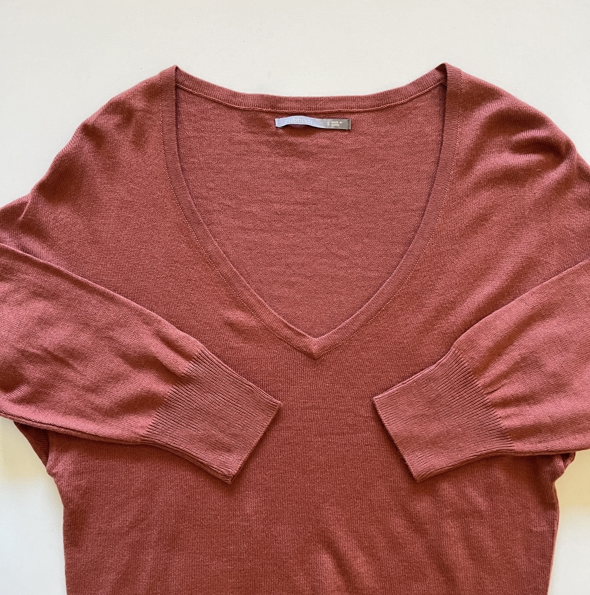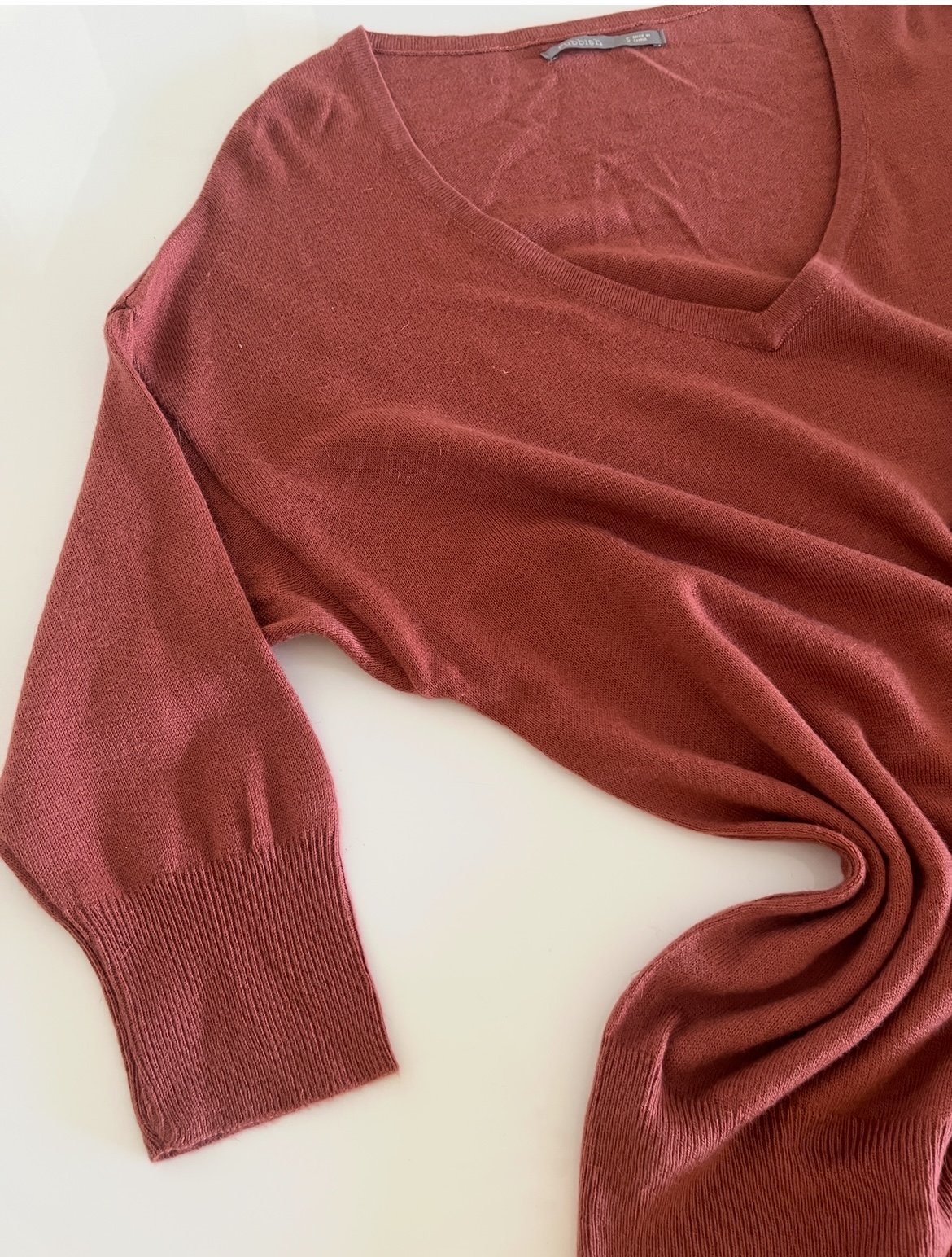بلوز بافت زنانه وارداتی محصول china جنس بافت ظریف آستین بلند یقه هفت رنگ آجری بسیار نرم و لطیف