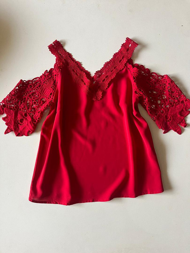 شومیززنانه برند sheinمجلسی دانتل کارشده کرپ ظریف آستین دار)یکی دودرجه اختلاف رنگی وجود دارد)
