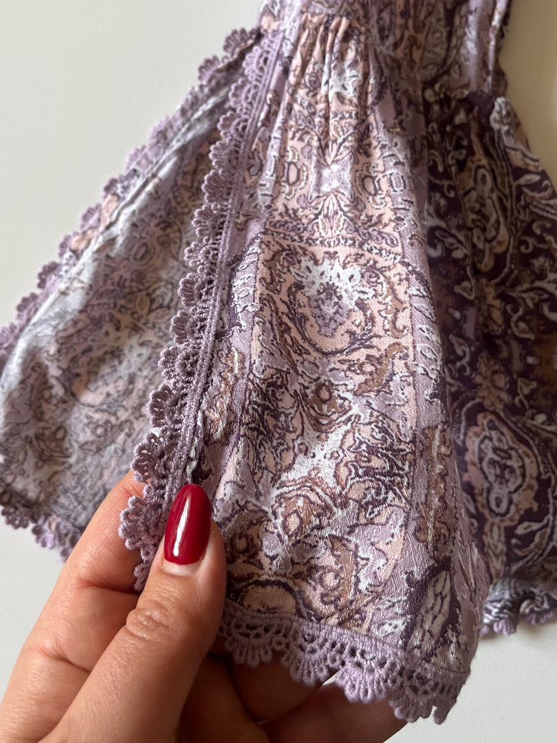 شومیز زنانه اروپایی یقه هفت نخی ورایون آستین بلندمدل آستین پایین کلوش وگیپور کارشده