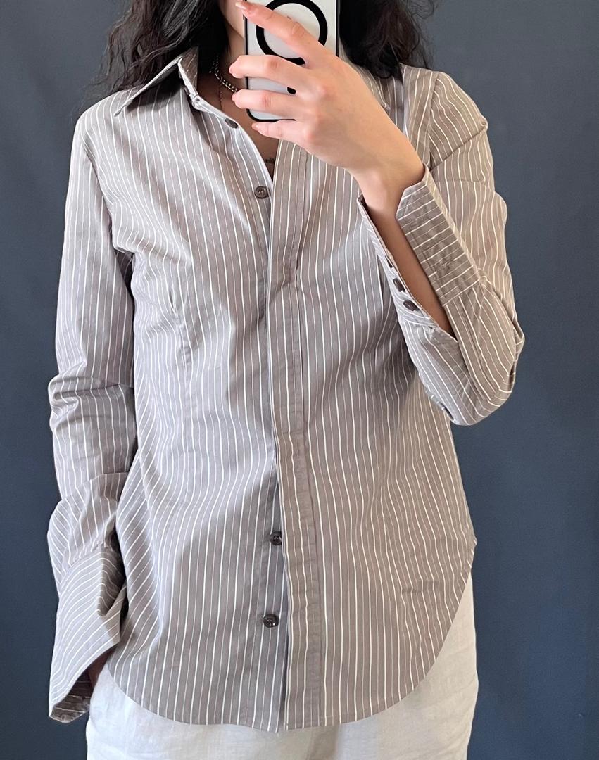 شومیززنانه اروپایی برندNew York محصول china جنس هفتاددرصد کتان و کمی کشسانی دارد آستین بلند جلو دکمه مخفی دارد برش دارو اندامی کد1167