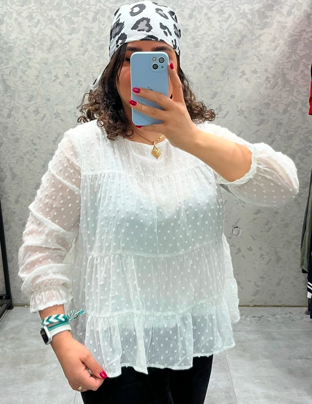 شومیززنانه مجلسی وارداتی محصول China کیپورآستردار خال برجسته لطیف و نرم آستین بلند و چیندار