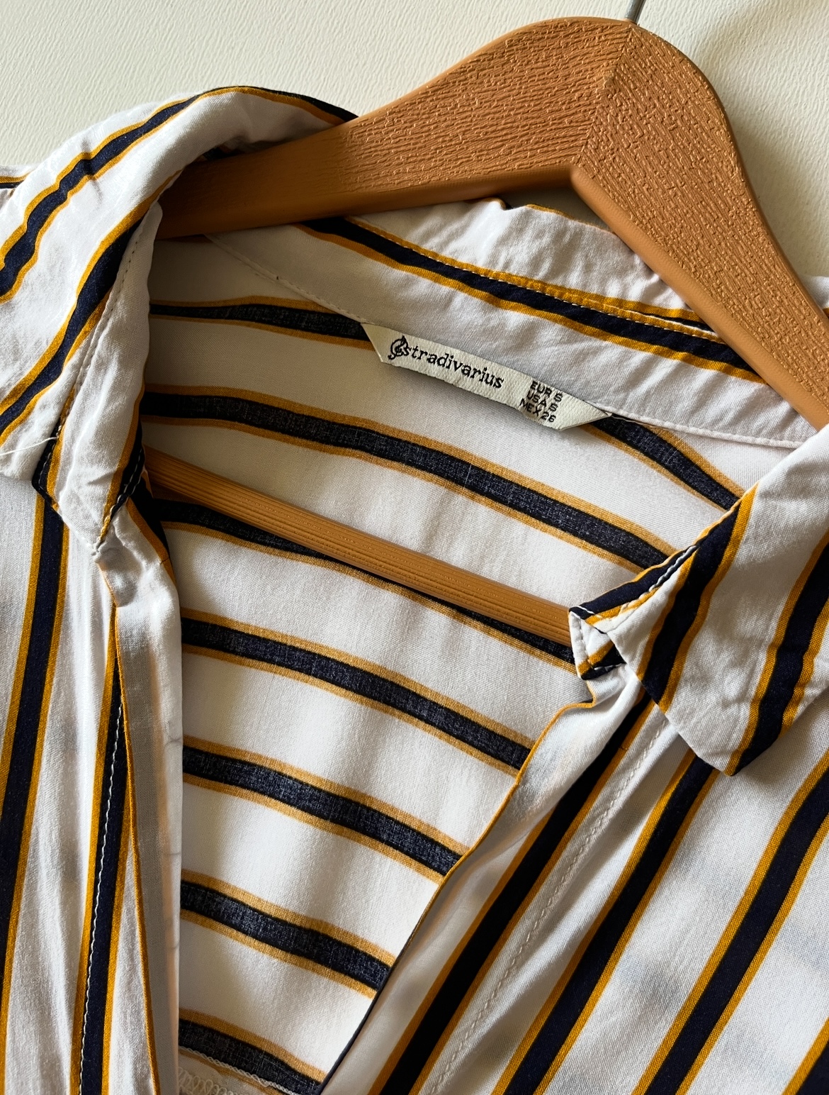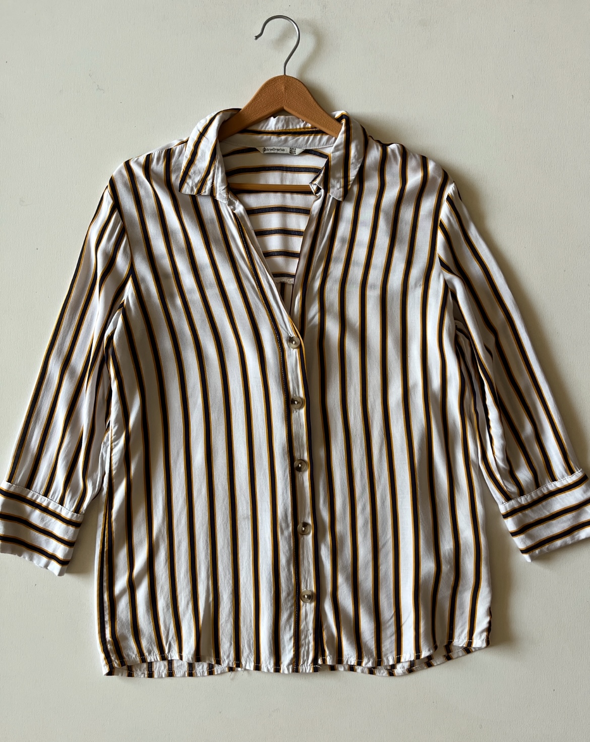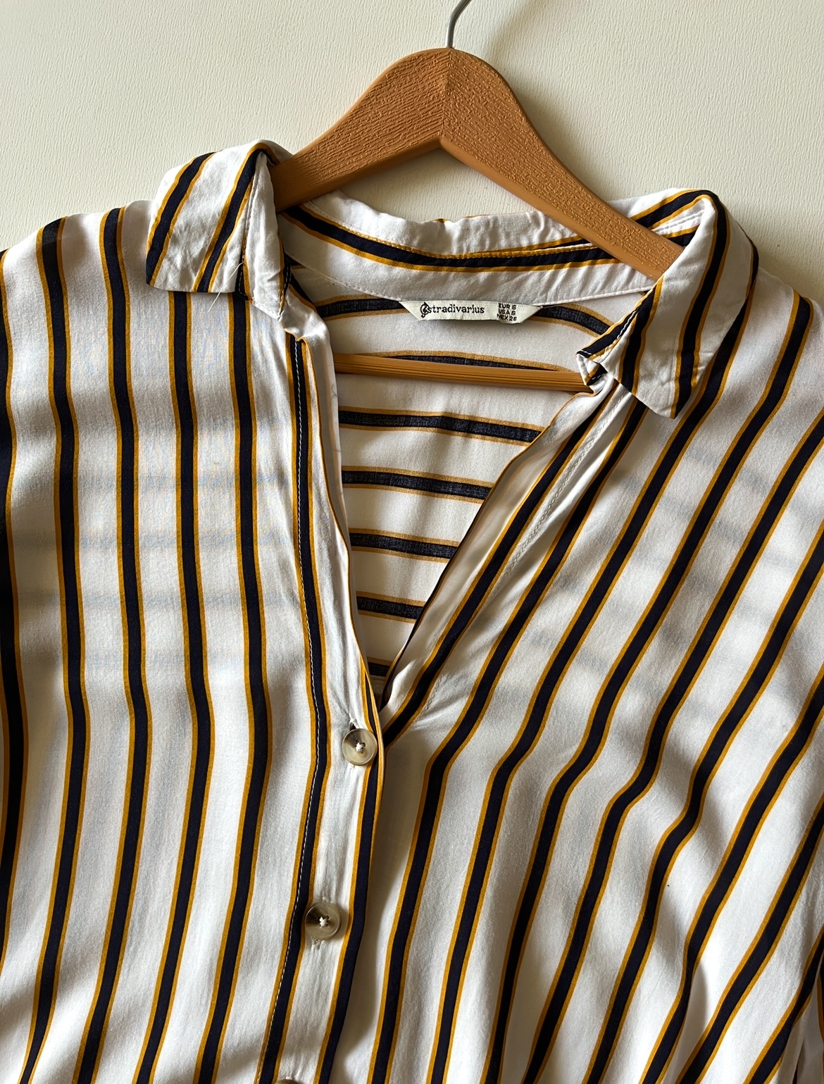 شومیززنانه برندstradivaias وارداتی جلو دکمه دار ،صد درصد ویسکوز نخی آستین سه رب خنک ولطیف