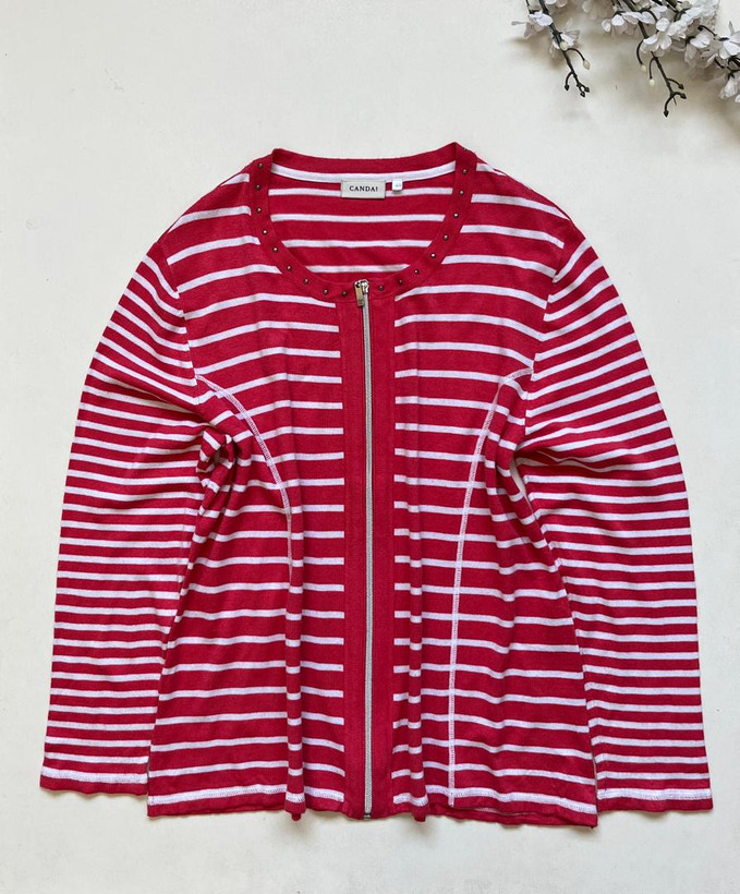 سویشرت وارداتی زنانه بافتنیبرندC&Aمحصول china زیپ تمام فلزی وسایزبزرگ یقه سنگدوزوکارشده