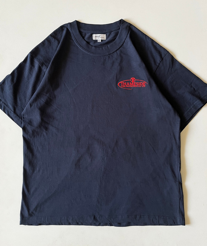 تیشرت مردانه آمریکایی برندarco/essentials،نخپنبه یقه گرد۴سانتی،چاپ تمام گلدوزی ،رنگ سورمه ی خیلی تیره،ضمانت آکبند اورجینال