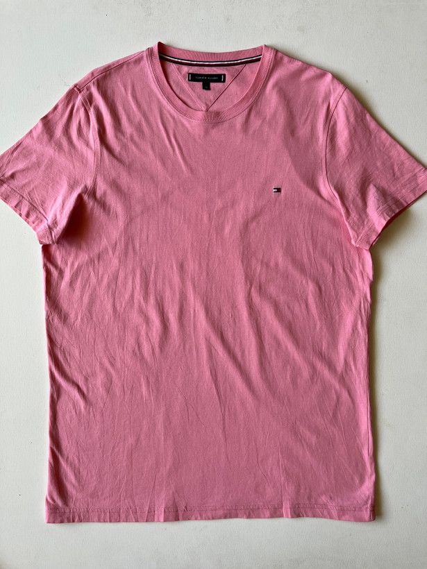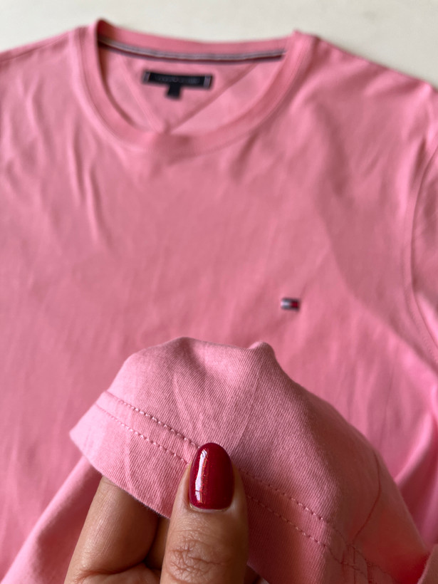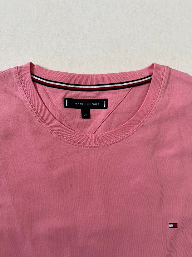 تیشرت مردانه برند اصلی TOMMY/HILFIGER کات لیبل صددرصد نخپنبه ،ضمانت آکبند اورجینال ،رنگ صورتی کم رنگ