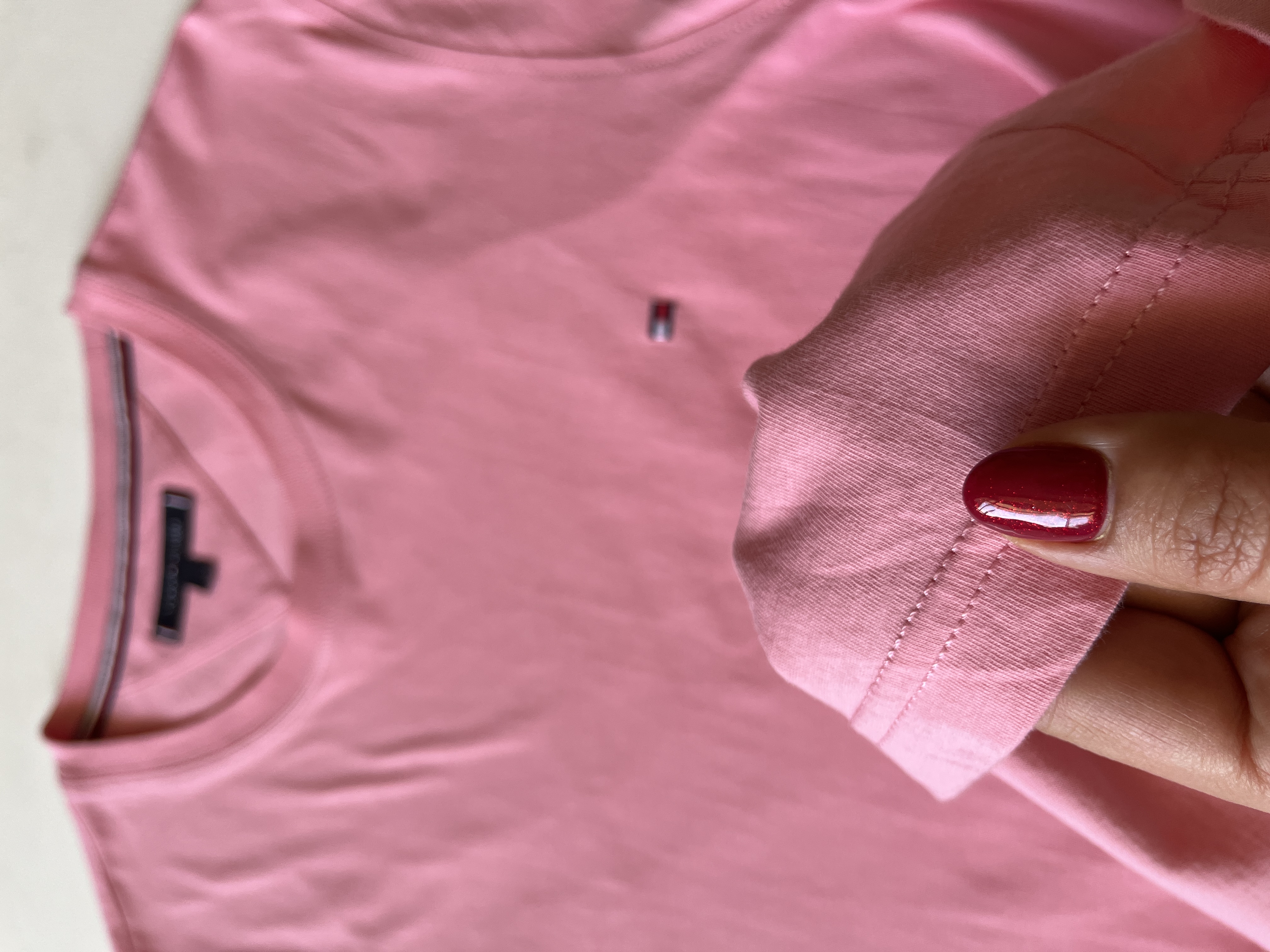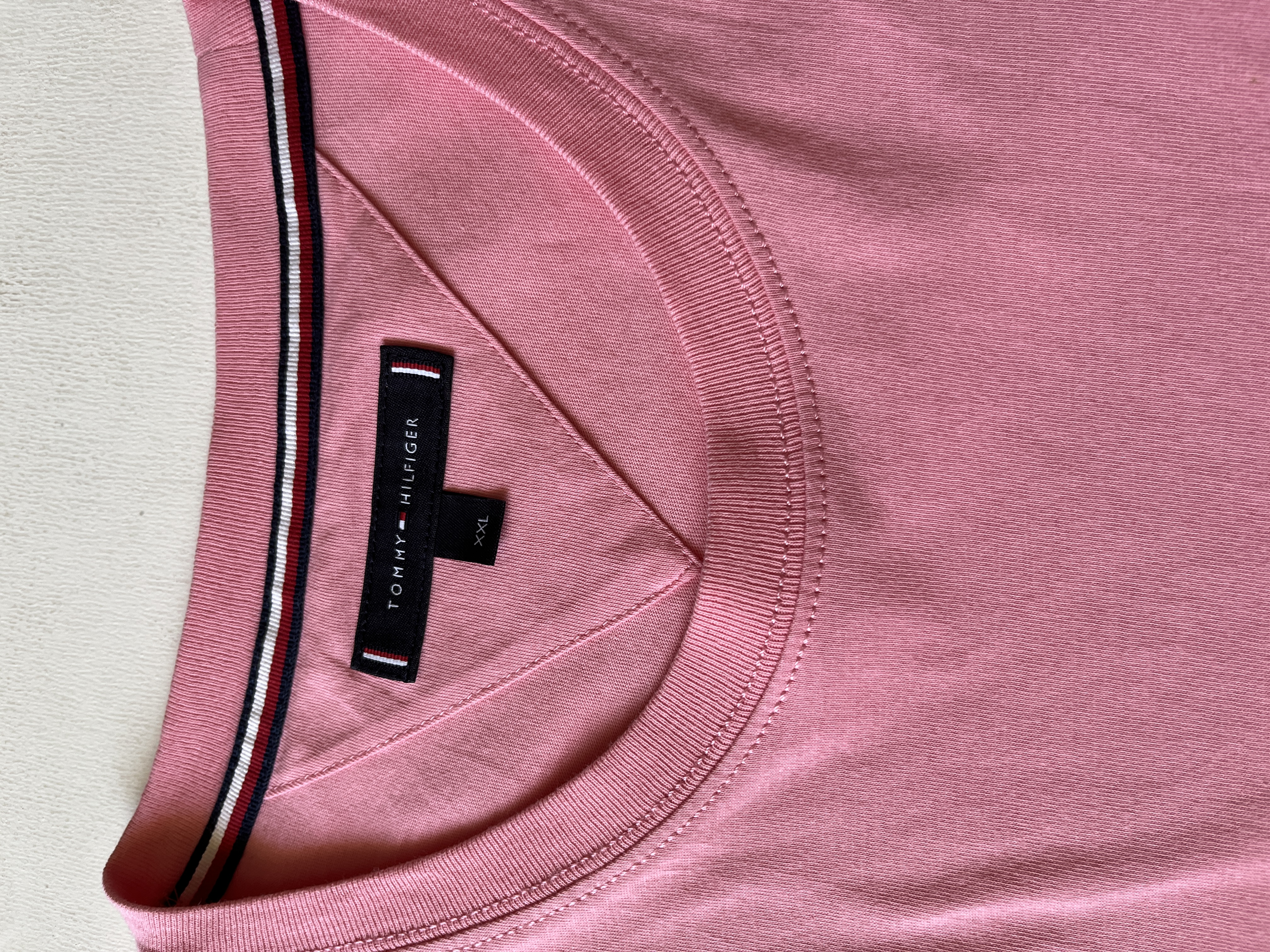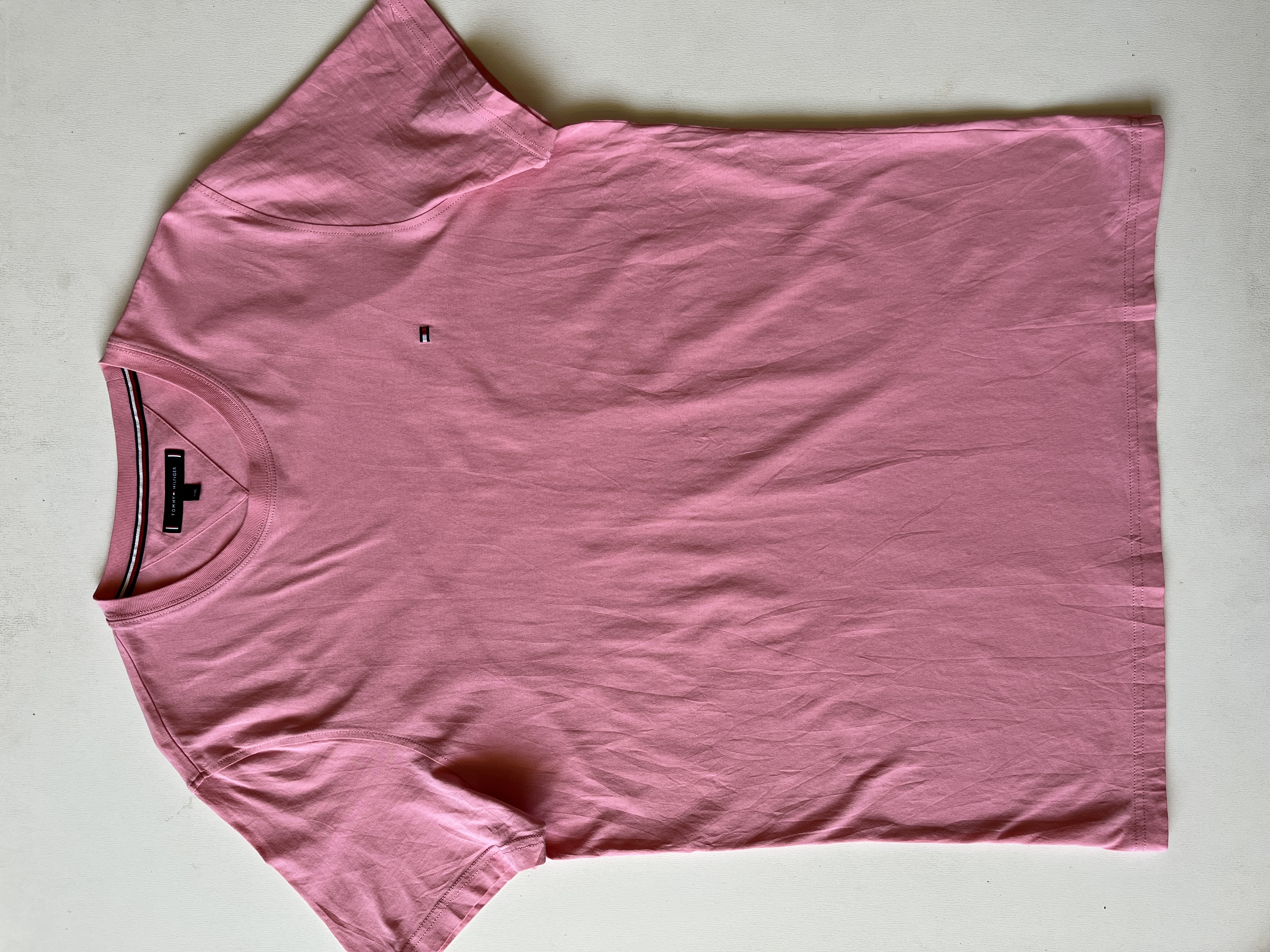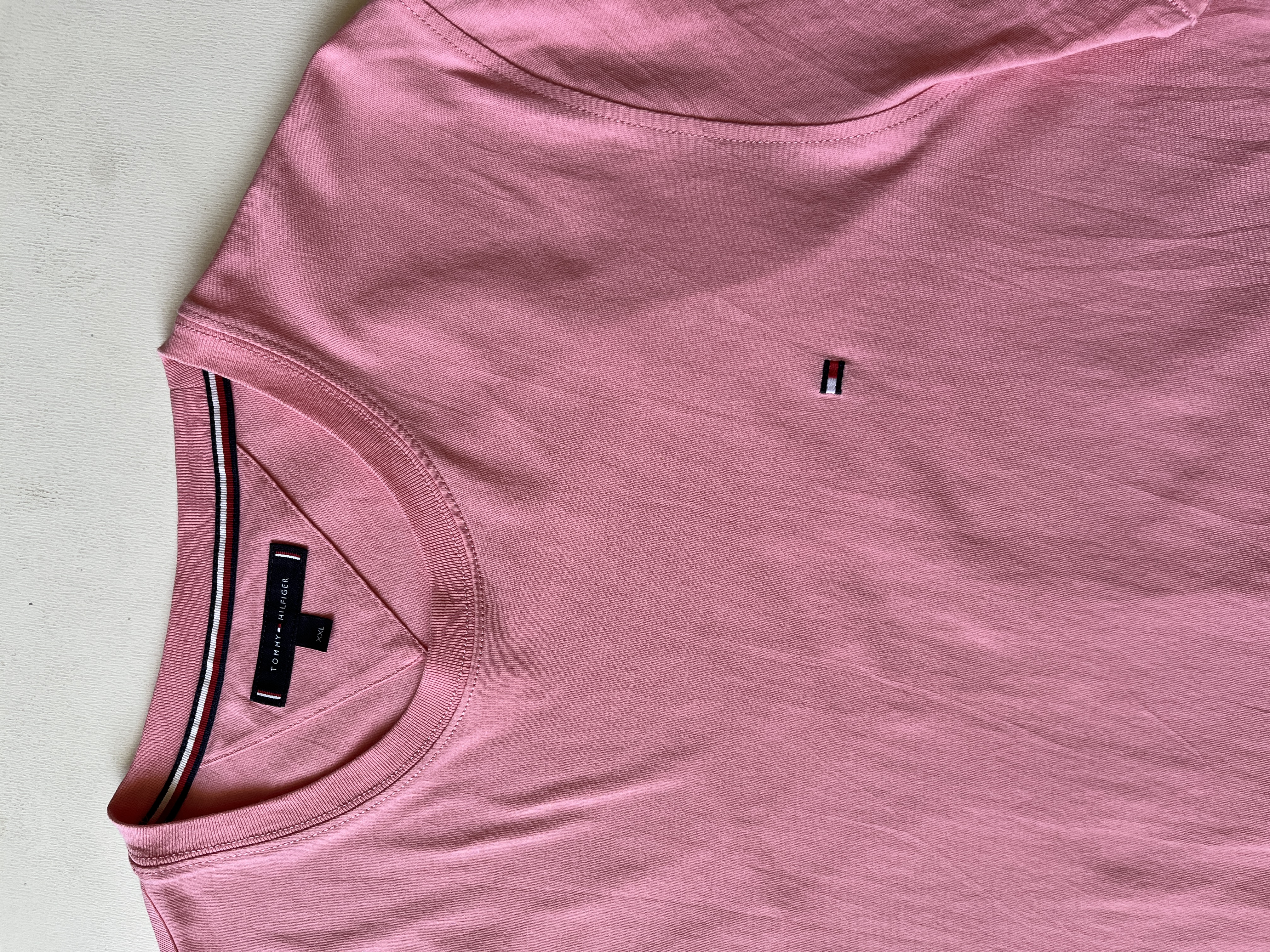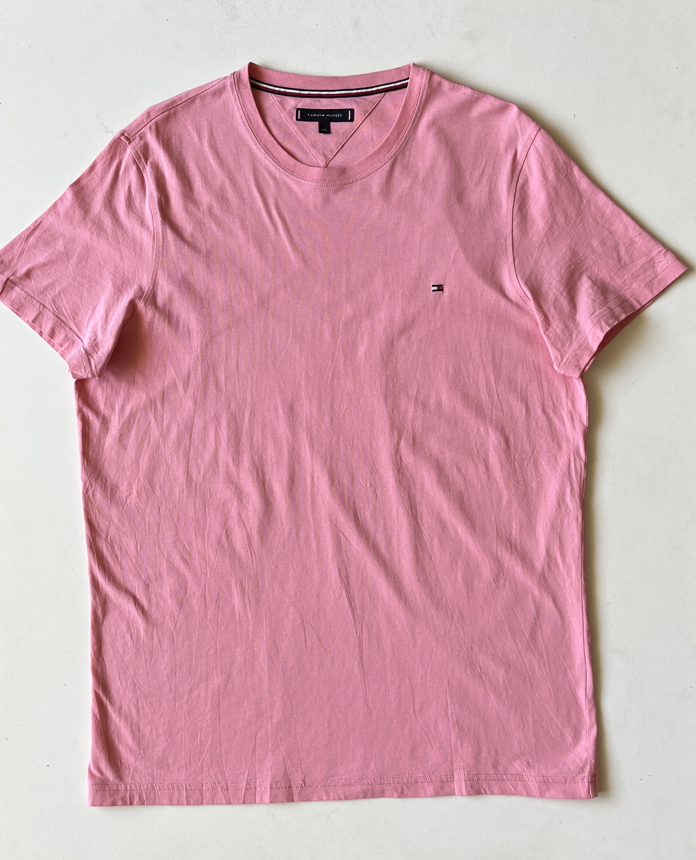تیشرت مردانه برند اصلی TOMMY/HILFIGER کات لیبل صددرصد نخپنبه ،ضمانت آکبند اورجینال ،رنگ صورتی کم رنگ