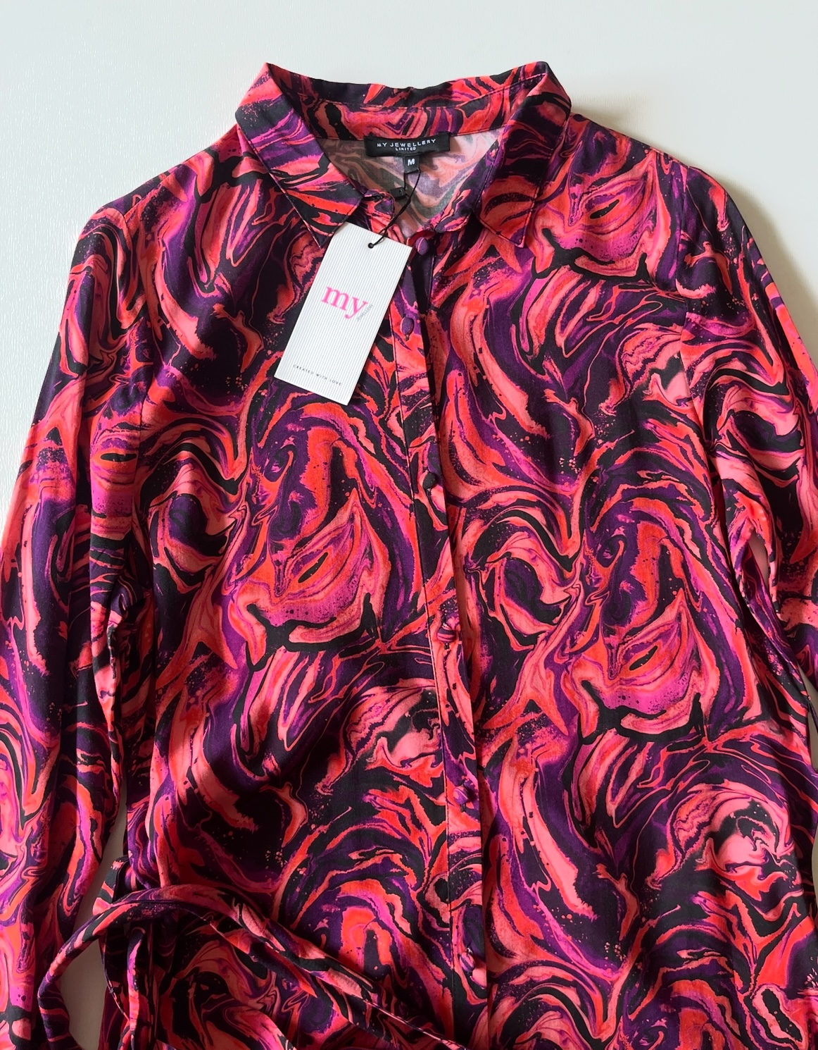 پیراهن زنانه یامانتوبرند اصلی MY/myJEWELLERYمحصول TURKEY جنس صد درصدویسکوز نخپنبه وارداتی آستین بلند ،جلو دکمه دار وکمربند دار ،دکمه زاپاس داردکد7082